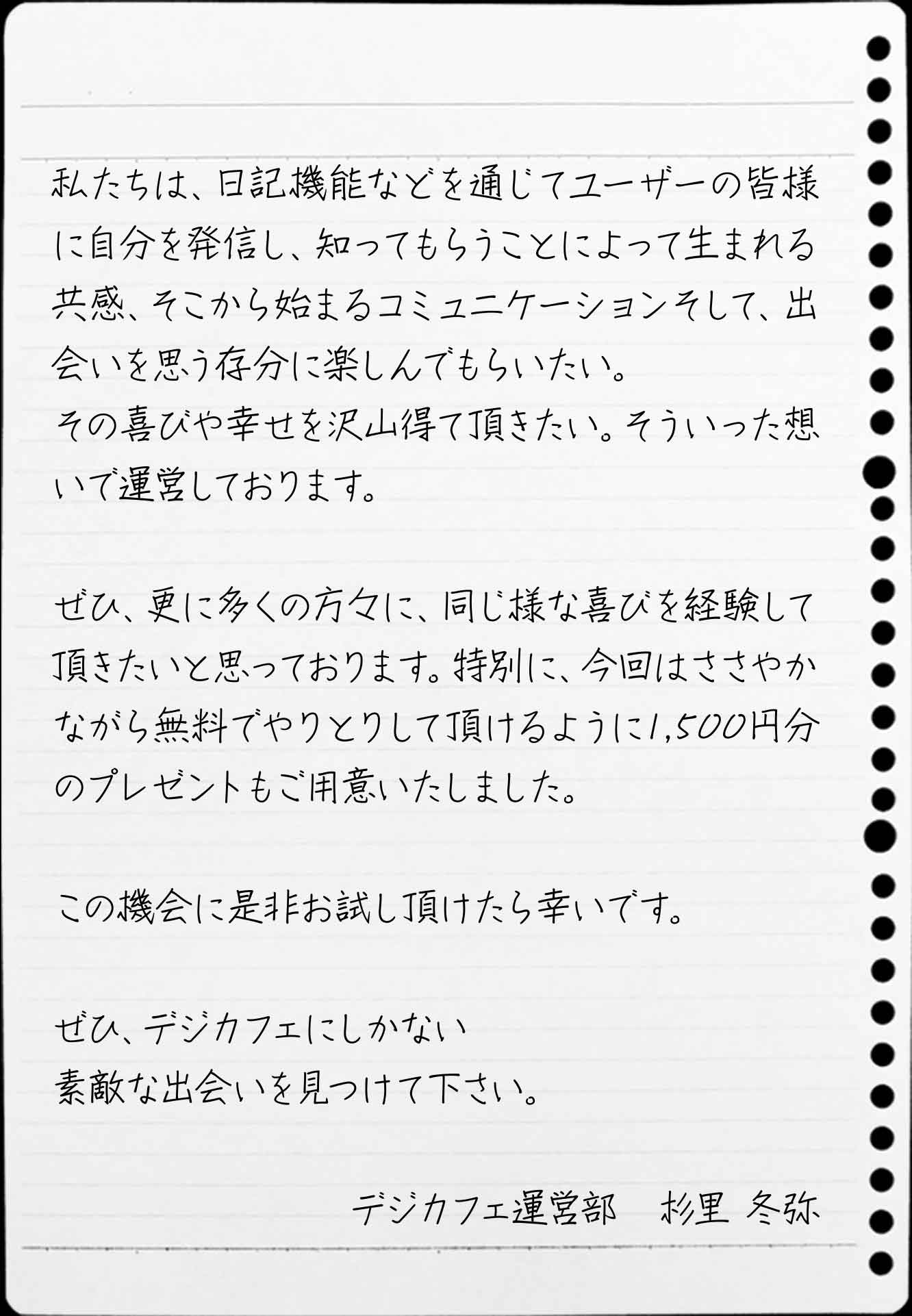 運営開始から21周年を迎えた老舗コミュニティサイト。 日記機能を特徴としたコミュニティは常に多くのユーザーが日記、コメント、チャットなどで盛り上がっており、 現在も1日3,000組のユーザーがマッチングしている。
