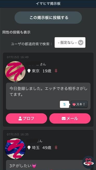 アダルト前提で楽しむコーナーとなっているので、プロフも日記も、画像も全部が断然エッチになっています! ユーザー画面から簡単に切り替えて入る事が可能なので、誰でもタダでエッチな画像や日記を楽しみ放題!